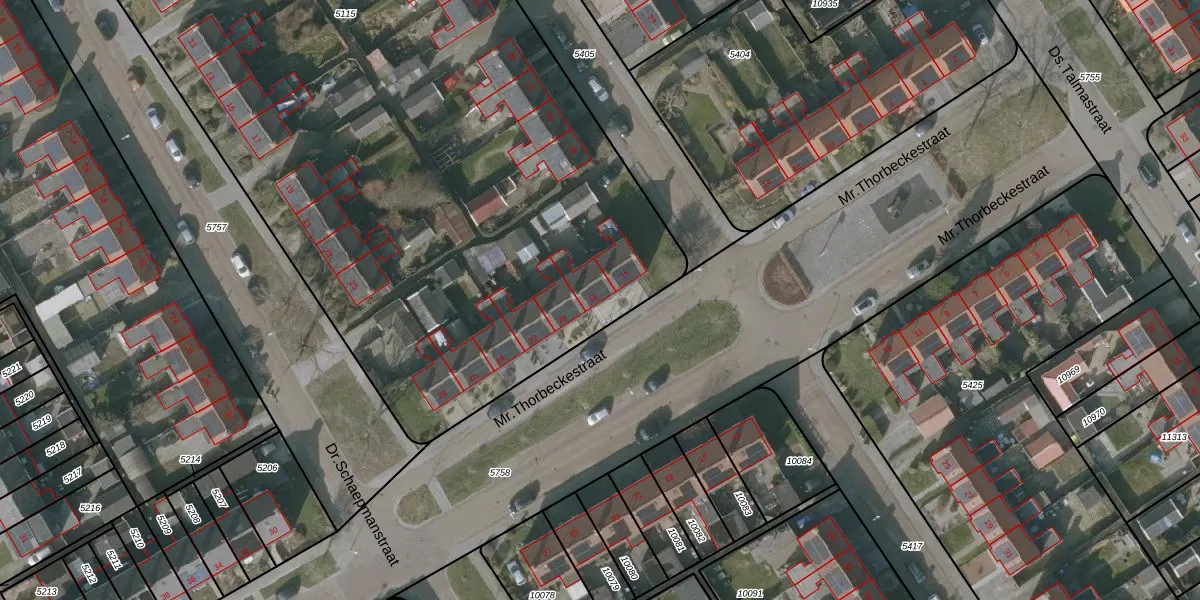 Het perceel waarop Mr.Thorbeckestraat 18 staat heeft een oppervlakte van 7620 m². Dit is een zeer groot perceel. De perceeloppervlakte wordt geregistreerd door het Kadaster. Gedetailleerde informatie over de maten van dit perceel kunt u vinden in het rapport Kadastrale kaart met maatvoering van Mr.Thorbeckestraat 18.