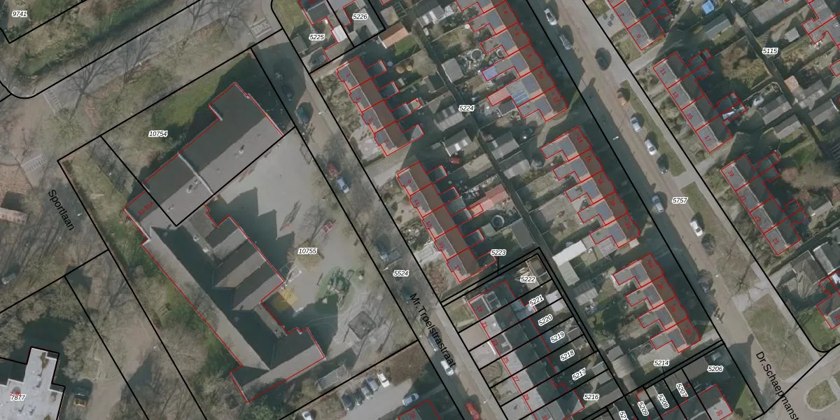 Het perceel waarop Mr.Troelstrastraat 11 staat heeft een oppervlakte van 5150 m². Dit is een zeer groot perceel. De perceeloppervlakte wordt geregistreerd door het Kadaster. Gedetailleerde informatie over de maten van dit perceel kunt u vinden in het rapport Kadastrale kaart met maatvoering van Mr.Troelstrastraat 11.