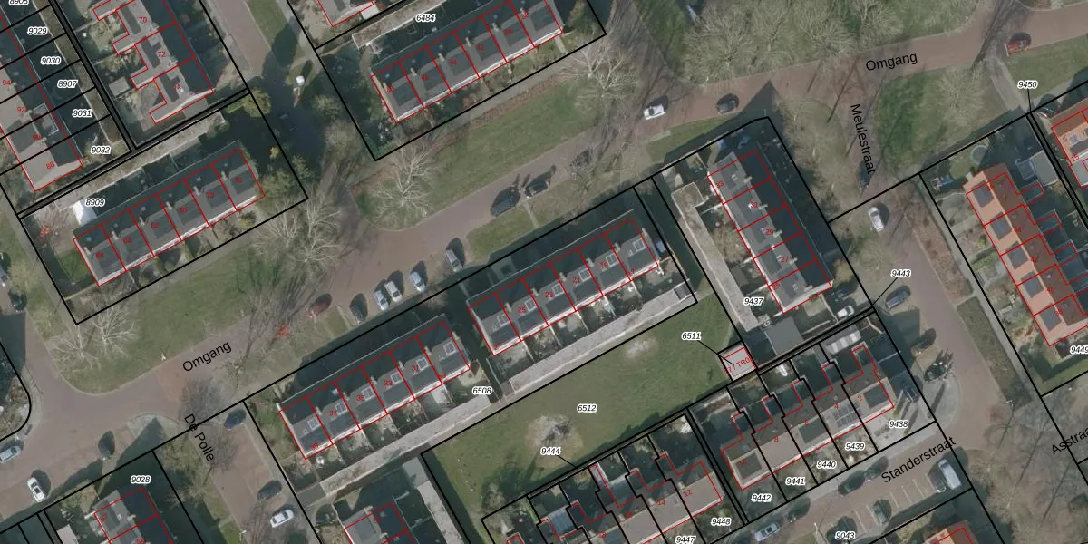 Het perceel waarop Omgang 23 staat heeft een oppervlakte van 2955 m². Dit is een zeer groot perceel. De perceeloppervlakte wordt geregistreerd door het Kadaster. Gedetailleerde informatie over de maten van dit perceel kunt u vinden in het rapport Kadastrale kaart met maatvoering van Omgang 23.