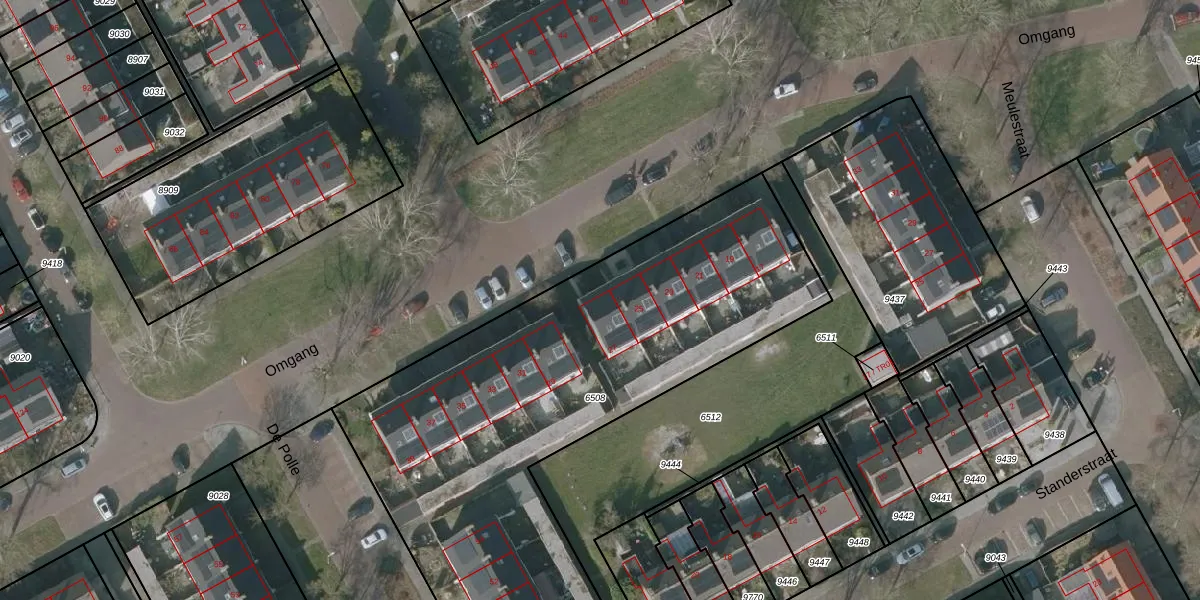 Het perceel waarop Omgang 27 staat heeft een oppervlakte van 2955 m². Dit is een zeer groot perceel. De perceeloppervlakte wordt geregistreerd door het Kadaster. Gedetailleerde informatie over de maten van dit perceel kunt u vinden in het rapport Kadastrale kaart met maatvoering van Omgang 27.