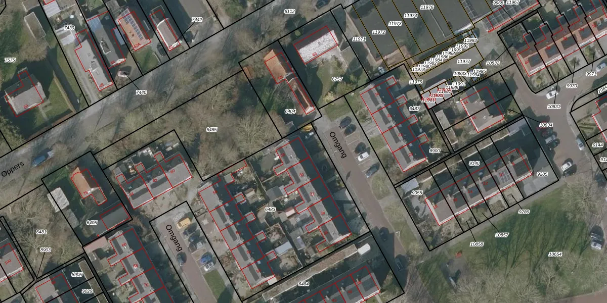Het perceel waarop Omgang 28 staat heeft een oppervlakte van 3511 m². Dit is een zeer groot perceel. De perceeloppervlakte wordt geregistreerd door het Kadaster. Gedetailleerde informatie over de maten van dit perceel kunt u vinden in het rapport Kadastrale kaart met maatvoering van Omgang 28.