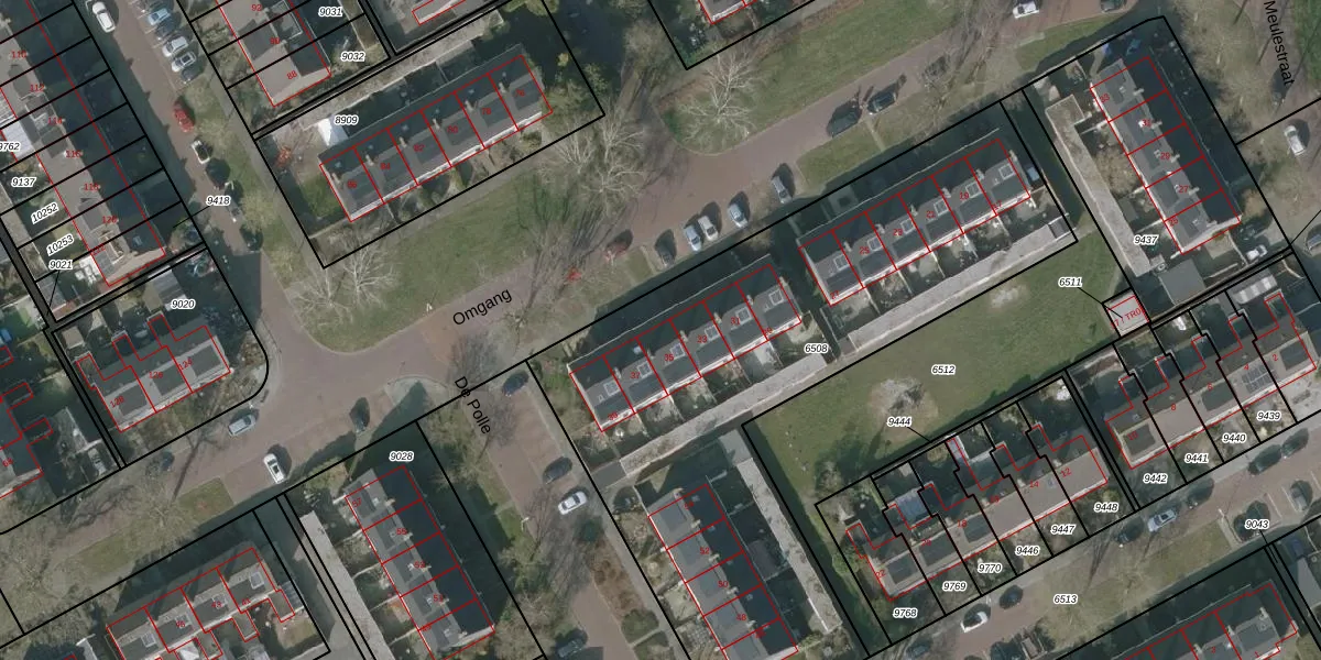 Het perceel waarop Omgang 35 staat heeft een oppervlakte van 2955 m². Dit is een zeer groot perceel. De perceeloppervlakte wordt geregistreerd door het Kadaster. Gedetailleerde informatie over de maten van dit perceel kunt u vinden in het rapport Kadastrale kaart met maatvoering van Omgang 35.