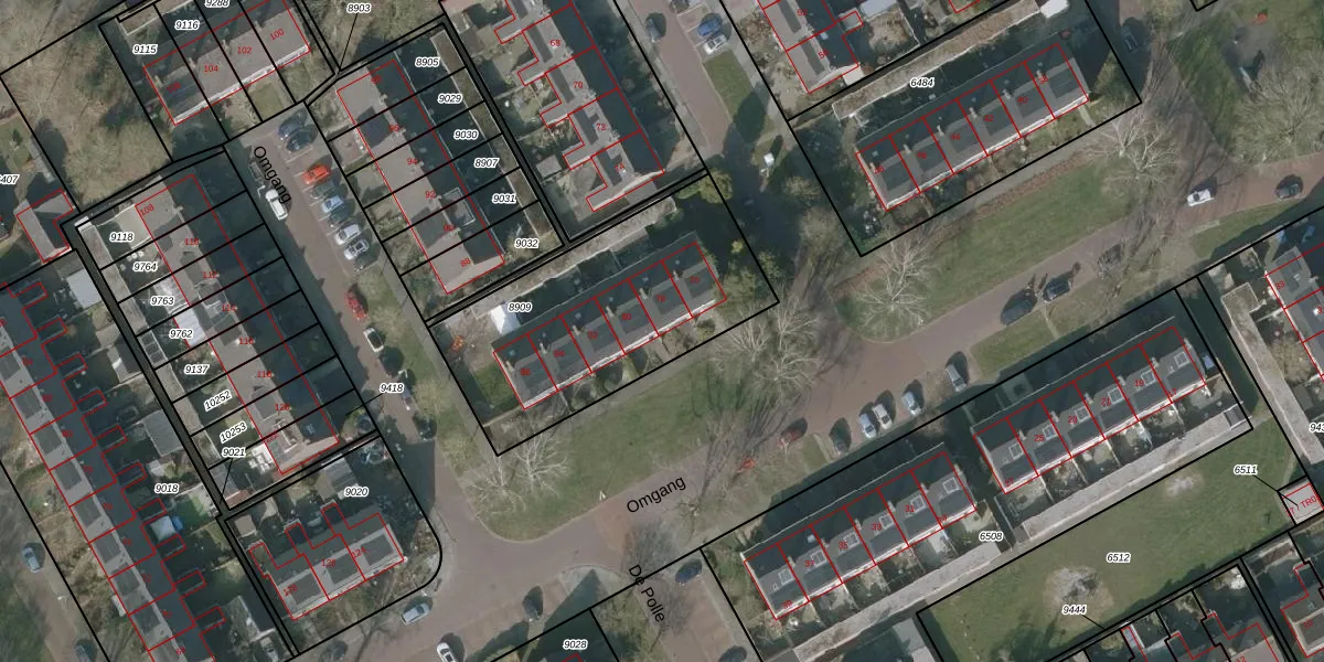 Het perceel waarop Omgang 78 staat heeft een oppervlakte van 1069 m². Dit is een zeer groot perceel. De perceeloppervlakte wordt geregistreerd door het Kadaster. Gedetailleerde informatie over de maten van dit perceel kunt u vinden in het rapport Kadastrale kaart met maatvoering van Omgang 78.