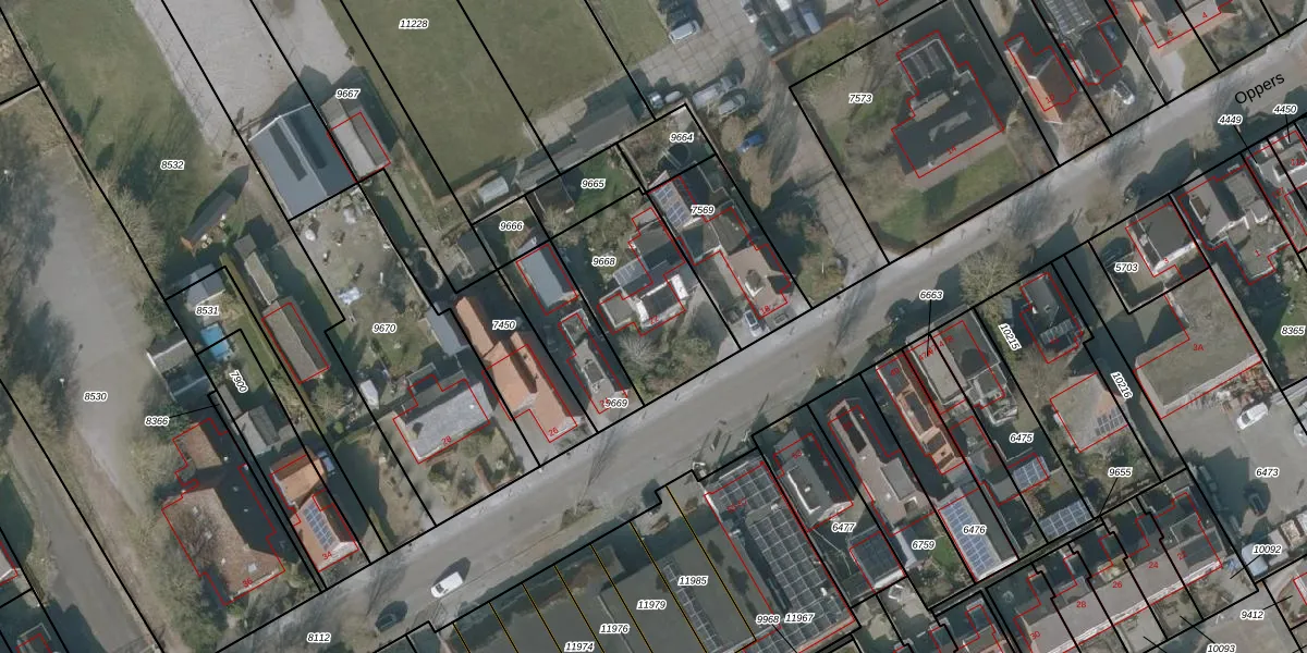 Het perceel waarop Oppers 22 staat heeft een oppervlakte van 496 m². Dit is een groot perceel. De perceeloppervlakte wordt geregistreerd door het Kadaster. Gedetailleerde informatie over de maten van dit perceel kunt u vinden in het rapport Kadastrale kaart met maatvoering van Oppers 22.