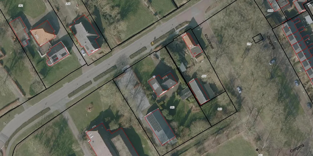 Het adres is gelegen op perceel 842 in de sectie G en de kadastrale gemeente Oudetrijne. De kadastrale aanduiding is aldus ODT00-G-842. Het perceel is kleiner dan gemiddeld in Oudetrijne. Het perceel is 2335 m² groot, terwijl het gemiddelde ligt op 1,9 ha. Het grootste perceel in de kadastrale gemeente is 91,1 ha. Het kleinste perceel heeft een oppervlakte van 0 m². Er zijn geen andere adressen aanwezig op het perceel. De laatste wijziging in het de Basisregistratie Kadaster (BRK) was op 22-04-2025.