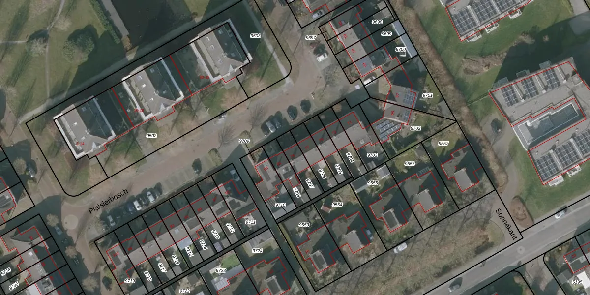 Gebruik de zoekbalk of klik op een perceel voor informatie over de adressen binnen dit perceel.