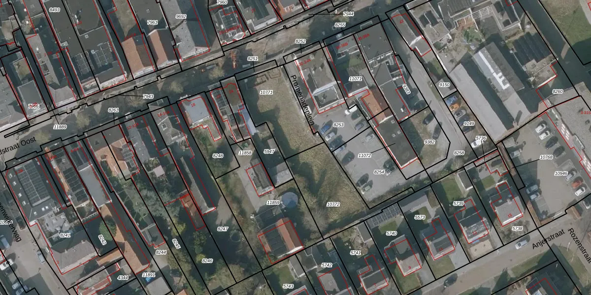 Het perceel waarop Promenadeplein 24 staat heeft een oppervlakte van 463 m². Dit is een groot perceel. De perceeloppervlakte wordt geregistreerd door het Kadaster. Gedetailleerde informatie over de maten van dit perceel kunt u vinden in het rapport Kadastrale kaart met maatvoering van Promenadeplein 24.