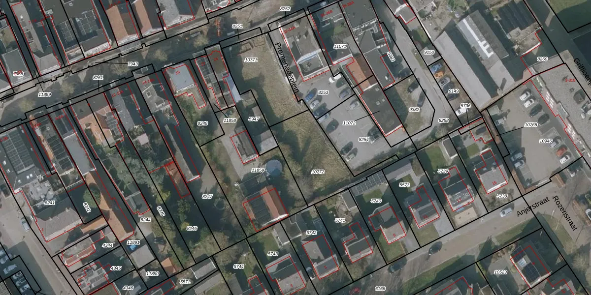 Het perceel waarop Promenadeplein 34 staat heeft een oppervlakte van 541 m². Dit is een groot perceel. De perceeloppervlakte wordt geregistreerd door het Kadaster. Gedetailleerde informatie over de maten van dit perceel kunt u vinden in het rapport Kadastrale kaart met maatvoering van Promenadeplein 34.