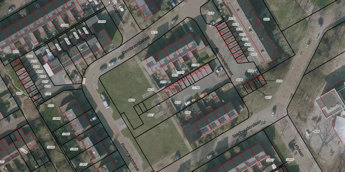 Rembrandtstraat 1-B021 is gelegen op kadastraal perceel WVG00D8628. Deze kadastrale aanduiding is uniek en wordt gebruikt door het Kadaster om eigendomsrechten en andere zakelijke rechten vast te leggen. Het perceel maakt onderdeel uit van de kadastrale gemeente Wolvega.