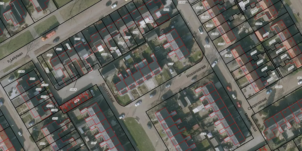 Het perceel waarop Rossinistraat 4 staat heeft een oppervlakte van 2070 m². Dit is een zeer groot perceel. De perceeloppervlakte wordt geregistreerd door het Kadaster. Gedetailleerde informatie over de maten van dit perceel kunt u vinden in het rapport Kadastrale kaart met maatvoering van Rossinistraat 4.