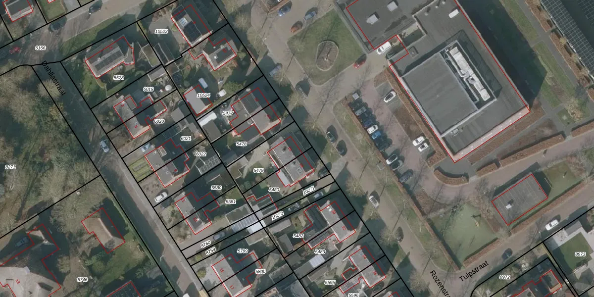 Rozenstraat 16 is gelegen op kadastraal perceel WVG00D5479. Deze kadastrale aanduiding is uniek en wordt gebruikt door het Kadaster om eigendomsrechten en andere zakelijke rechten vast te leggen. Het perceel maakt onderdeel uit van de kadastrale gemeente Wolvega.