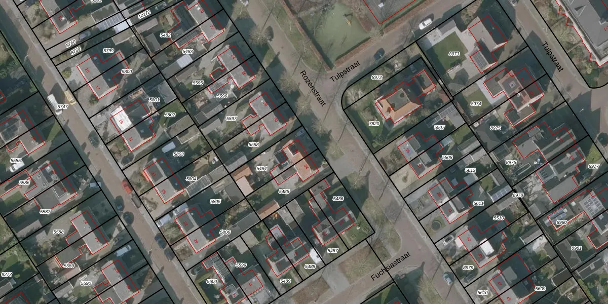 Rozenstraat 32 is gelegen op kadastraal perceel WVG00D5484. Deze kadastrale aanduiding is uniek en wordt gebruikt door het Kadaster om eigendomsrechten en andere zakelijke rechten vast te leggen. Het perceel maakt onderdeel uit van de kadastrale gemeente Wolvega.