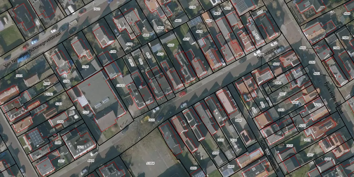 Het perceel waarop Schoolstraat 16 staat heeft een oppervlakte van 229 m². Dit is een middelgroot perceel. De perceeloppervlakte wordt geregistreerd door het Kadaster. Gedetailleerde informatie over de maten van dit perceel kunt u vinden in het rapport Kadastrale kaart met maatvoering van Schoolstraat 16.