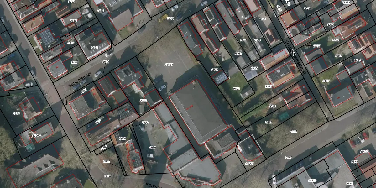 Het perceel waarop Schoolstraat 19 staat heeft een oppervlakte van 1895 m². Dit is een zeer groot perceel. De perceeloppervlakte wordt geregistreerd door het Kadaster. Gedetailleerde informatie over de maten van dit perceel kunt u vinden in het rapport Kadastrale kaart met maatvoering van Schoolstraat 19.