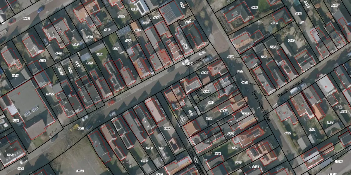 Gebruik de zoekbalk of klik op een perceel voor informatie over de adressen binnen dit perceel.