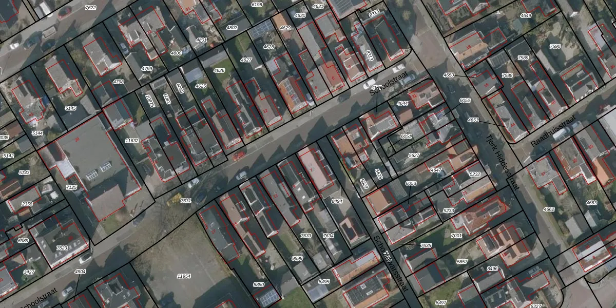 Schoolstraat 7 is gelegen op kadastraal perceel WVG00D8494. Deze kadastrale aanduiding is uniek en wordt gebruikt door het Kadaster om eigendomsrechten en andere zakelijke rechten vast te leggen. Het perceel maakt onderdeel uit van de kadastrale gemeente Wolvega.