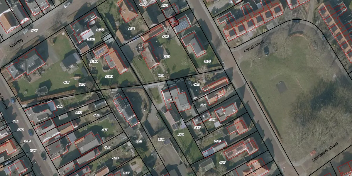 Gebruik de zoekbalk of klik op een perceel voor informatie over de adressen binnen dit perceel.