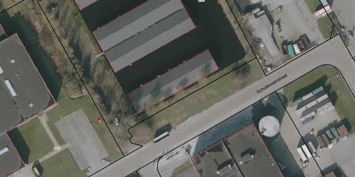 Het perceel waarop Schuttevaerstraat 44 staat heeft een oppervlakte van 8315 m². Dit is een zeer groot perceel. De perceeloppervlakte wordt geregistreerd door het Kadaster. Gedetailleerde informatie over de maten van dit perceel kunt u vinden in het rapport Kadastrale kaart met maatvoering van Schuttevaerstraat 44.