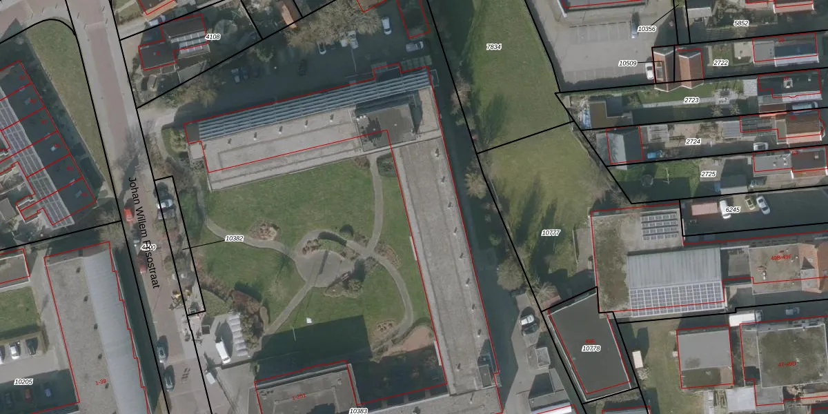 Het perceel waarop het adres ligt is WVG00-D-10383. De afkorting 'WVG00' staat voor kadastrale gemeente Wolvega. Het perceel is met 1,4 ha relatief groot. Het gemiddelde ligt in de kadastrale gemeente Wolvega op 6205,41 m². Het kleinste perceel in de kadastrale gemeente is 0 m² groot. De grootste perceeloppervlakte is 45,2 ha. Er zijn 102 adressen aanwezig op het perceel. De huidige grenzen van het perceel zijn digitaal in de Basisregistratie Kadaster (BRK) geregistreerd op 01-03-2010.