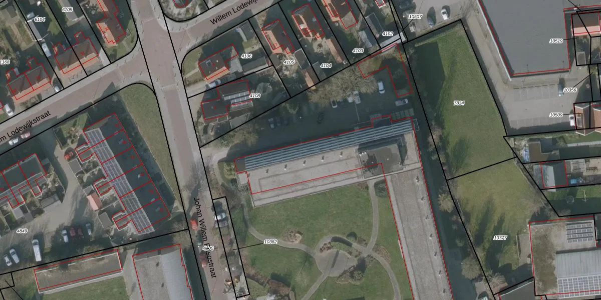 Het perceel waarop het adres ligt is WVG00-D-10383. De afkorting 'WVG00' staat voor kadastrale gemeente Wolvega. Het perceel is met 1,4 ha relatief groot. Het gemiddelde ligt in de kadastrale gemeente Wolvega op 6204,14 m². Het kleinste perceel in de kadastrale gemeente is 0 m² groot. De grootste perceeloppervlakte is 45,2 ha. Er zijn 102 adressen aanwezig op het perceel. In de Basisregistratie Kadaster (BRK) werden de grenzen van het perceel geregistreerd op 01-03-2010.