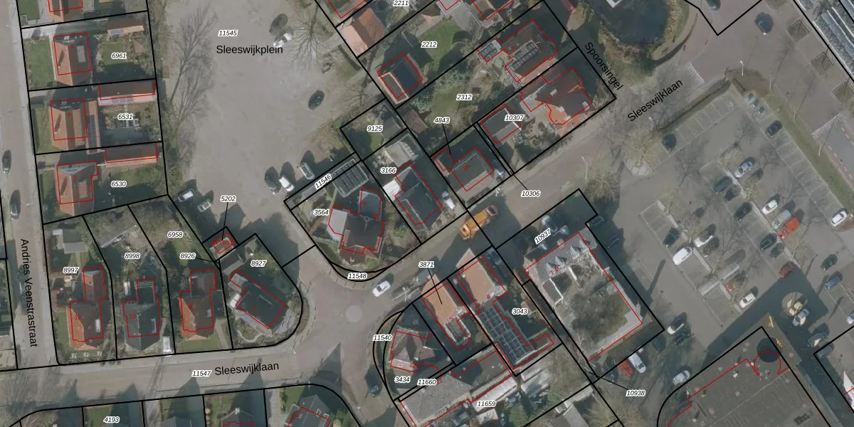 Gebruik de zoekbalk of klik op een perceel voor informatie over de adressen binnen dit perceel.