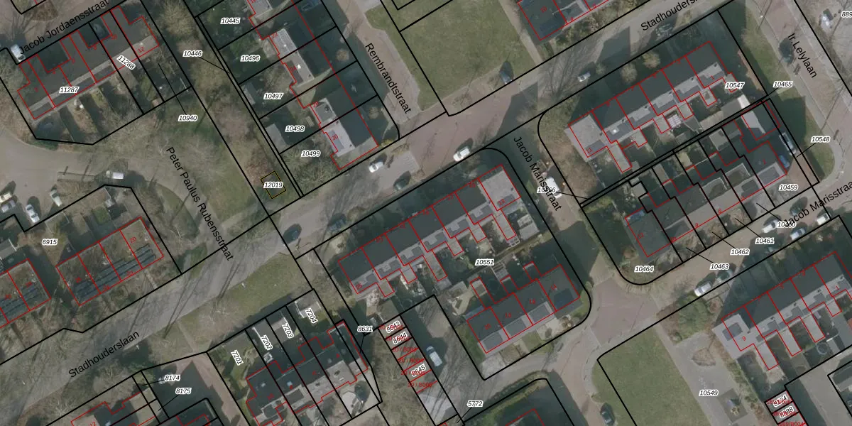 Het perceel waarop Stadhouderslaan 19 staat heeft een oppervlakte van 1900 m². Dit is een zeer groot perceel. De perceeloppervlakte wordt geregistreerd door het Kadaster. Gedetailleerde informatie over de maten van dit perceel kunt u vinden in het rapport Kadastrale kaart met maatvoering van Stadhouderslaan 19.
