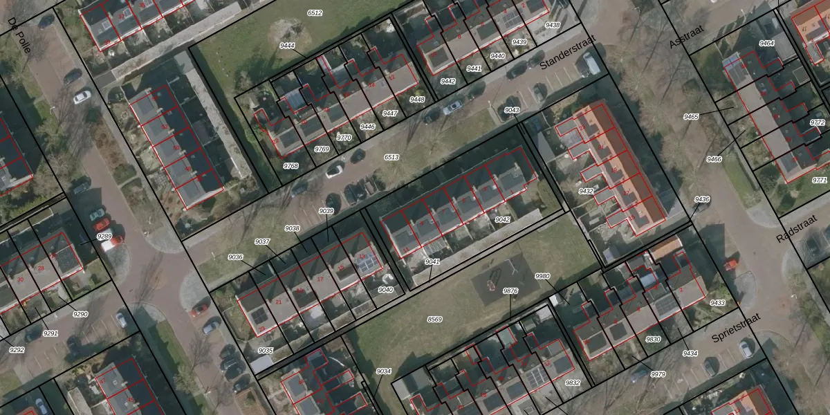 Het perceel waarop Standerstraat 9 staat heeft een oppervlakte van 958 m². Dit is een groot perceel. De perceeloppervlakte wordt geregistreerd door het Kadaster. Gedetailleerde informatie over de maten van dit perceel kunt u vinden in het rapport Kadastrale kaart met maatvoering van Standerstraat 9.