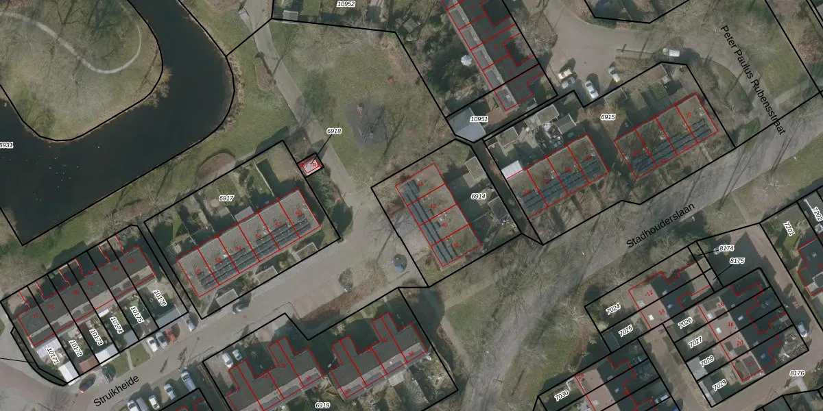 Het perceel waarop Struikheide 42 staat heeft een oppervlakte van 727 m². Dit is een groot perceel. De perceeloppervlakte wordt geregistreerd door het Kadaster. Gedetailleerde informatie over de maten van dit perceel kunt u vinden in het rapport Kadastrale kaart met maatvoering van Struikheide 42.