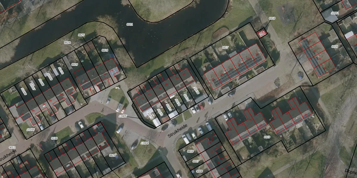 Gebruik de zoekbalk of klik op een perceel voor informatie over de adressen binnen dit perceel.