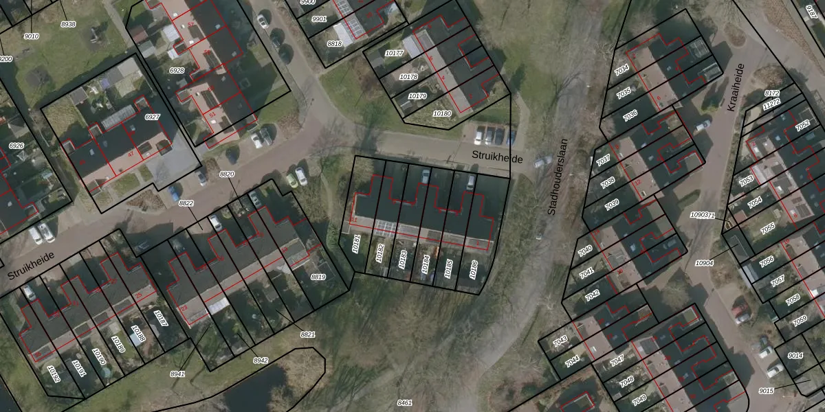 Struikheide 7 is gelegen op kadastraal perceel WVG00D10183. Deze kadastrale aanduiding is uniek en wordt gebruikt door het Kadaster om eigendomsrechten en andere zakelijke rechten vast te leggen. Het perceel maakt onderdeel uit van de kadastrale gemeente Wolvega.