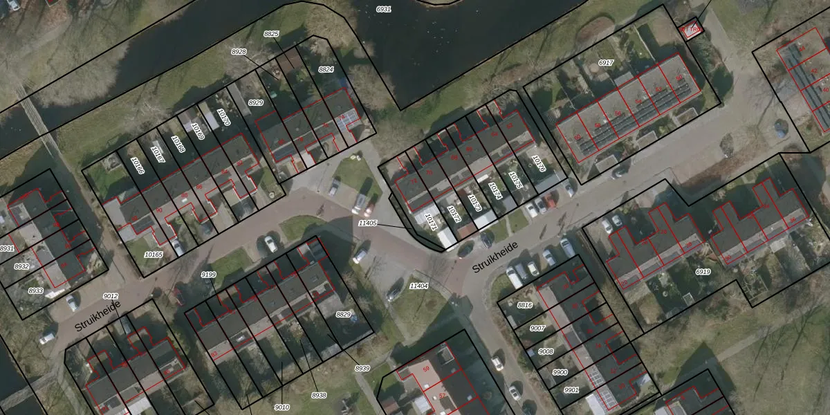 Gebruik de zoekbalk of klik op een perceel voor informatie over de adressen binnen dit perceel.