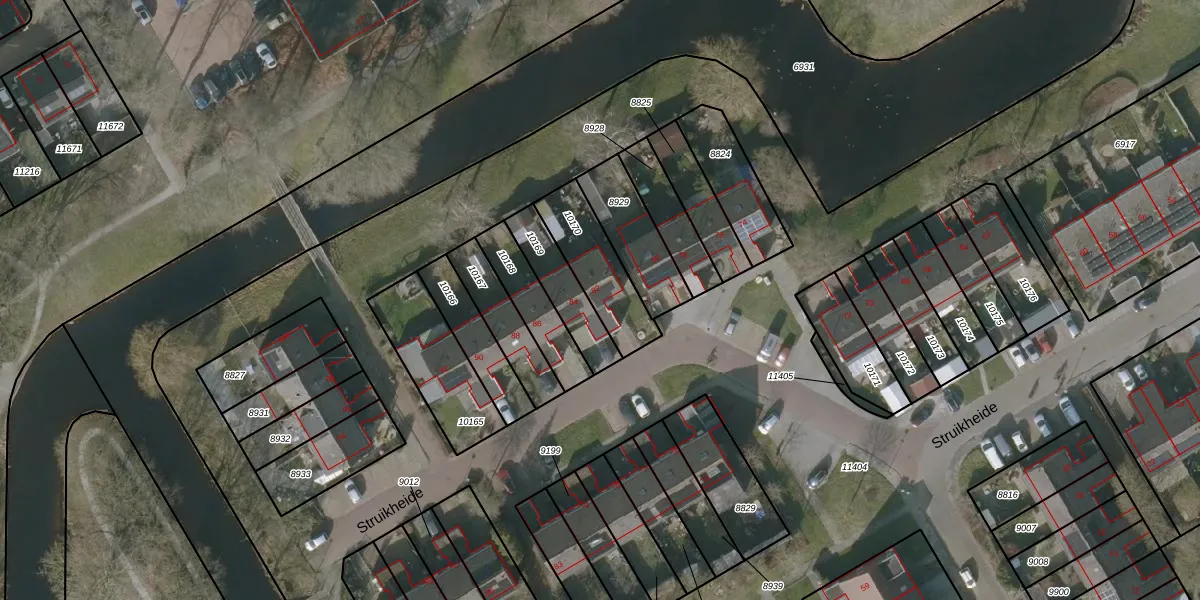 Het perceel waarop Struikheide 82 staat heeft een oppervlakte van 233 m². Dit is een middelgroot perceel. De perceeloppervlakte wordt geregistreerd door het Kadaster. Gedetailleerde informatie over de maten van dit perceel kunt u vinden in het rapport Kadastrale kaart met maatvoering van Struikheide 82.
