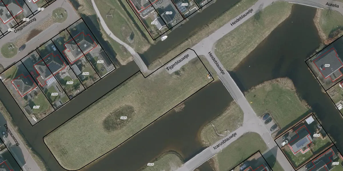 Het perceel waarop Tijgerblauwtje 31 staat heeft een oppervlakte van 2745 m². Dit is een zeer groot perceel. De perceeloppervlakte wordt geregistreerd door het Kadaster. Gedetailleerde informatie over de maten van dit perceel kunt u vinden in het rapport Kadastrale kaart met maatvoering van Tijgerblauwtje 31.