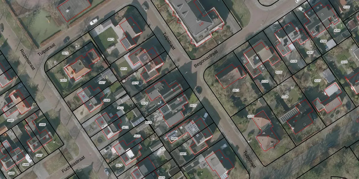 Gebruik de zoekbalk of klik op een perceel voor informatie over de adressen binnen dit perceel.