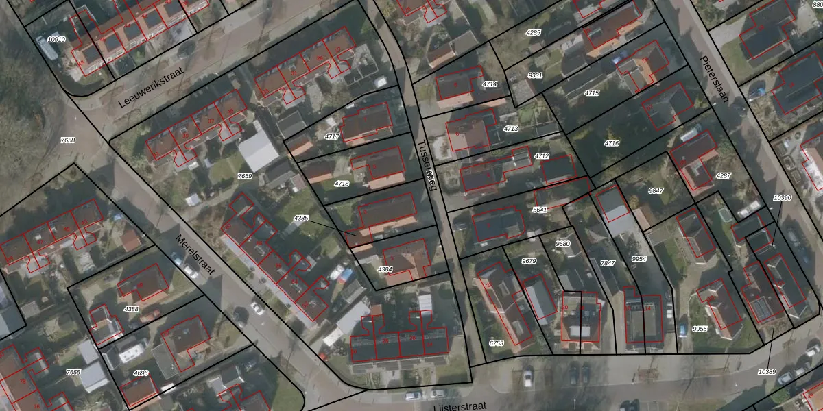 Gebruik de zoekbalk of klik op een perceel voor informatie over de adressen binnen dit perceel.