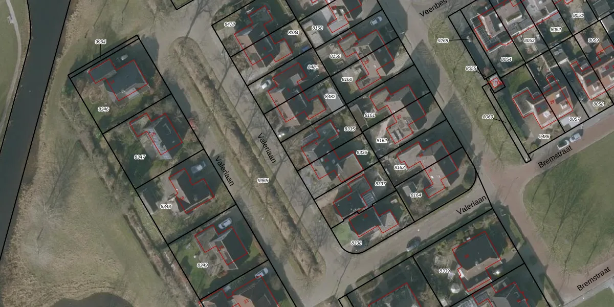 Valeriaan 9 is gelegen op kadastraal perceel WVG00D8335. Deze kadastrale aanduiding is uniek en wordt gebruikt door het Kadaster om eigendomsrechten en andere zakelijke rechten vast te leggen. Het perceel maakt onderdeel uit van de kadastrale gemeente Wolvega.
