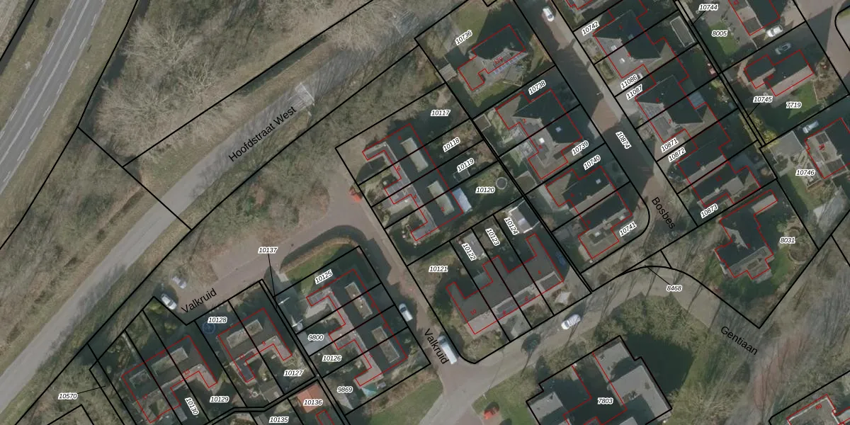Het perceel waarop Valkruid 2 staat heeft een oppervlakte van 323 m². Dit is een groot perceel. De perceeloppervlakte wordt geregistreerd door het Kadaster. Gedetailleerde informatie over de maten van dit perceel kunt u vinden in het rapport Kadastrale kaart met maatvoering van Valkruid 2.