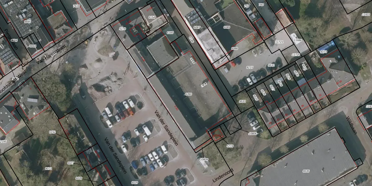 Het perceel waarop Van der Sandeplein 2 staat heeft een oppervlakte van 1376 m². Dit is een zeer groot perceel. De perceeloppervlakte wordt geregistreerd door het Kadaster. Gedetailleerde informatie over de maten van dit perceel kunt u vinden in het rapport Kadastrale kaart met maatvoering van Van der Sandeplein 2.