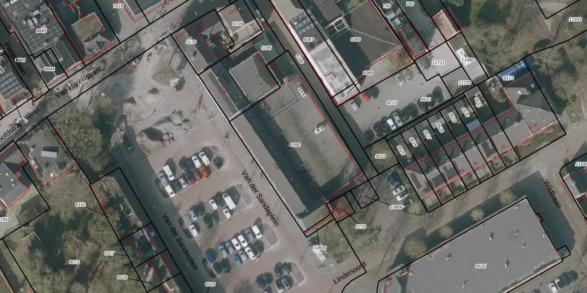 Het perceel waarop Van der Sandeplein 2-A staat heeft een oppervlakte van 1376 m². Dit is een zeer groot perceel. De perceeloppervlakte wordt geregistreerd door het Kadaster. Gedetailleerde informatie over de maten van dit perceel kunt u vinden in het rapport Kadastrale kaart met maatvoering van Van der Sandeplein 2-A.