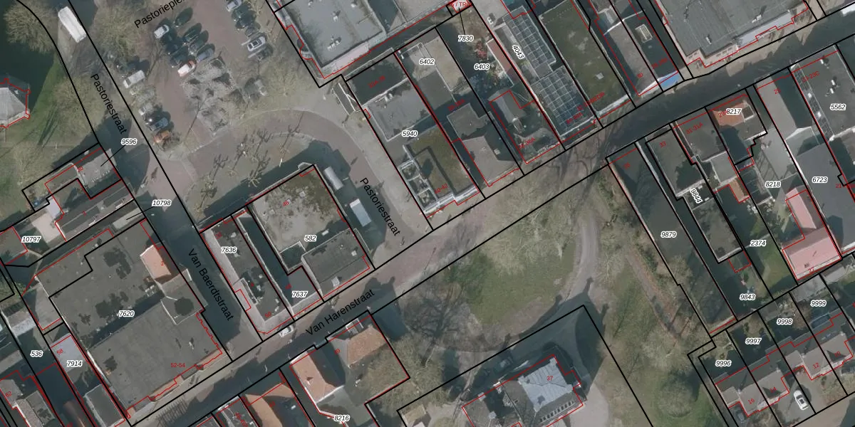 Het perceel waarop Van Harenstraat 42 staat heeft een oppervlakte van 555 m². Dit is een groot perceel. De perceeloppervlakte wordt geregistreerd door het Kadaster. Gedetailleerde informatie over de maten van dit perceel kunt u vinden in het rapport Kadastrale kaart met maatvoering van Van Harenstraat 42.