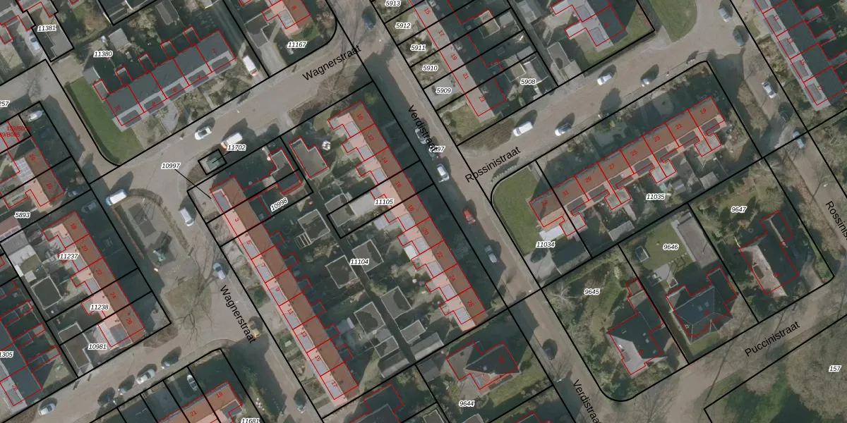 Het perceel waarop Verdistraat 18 staat heeft een oppervlakte van 2645 m². Dit is een zeer groot perceel. De perceeloppervlakte wordt geregistreerd door het Kadaster. Gedetailleerde informatie over de maten van dit perceel kunt u vinden in het rapport Kadastrale kaart met maatvoering van Verdistraat 18.