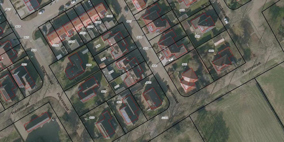 Gebruik de zoekbalk of klik op een perceel voor informatie over de adressen binnen dit perceel.