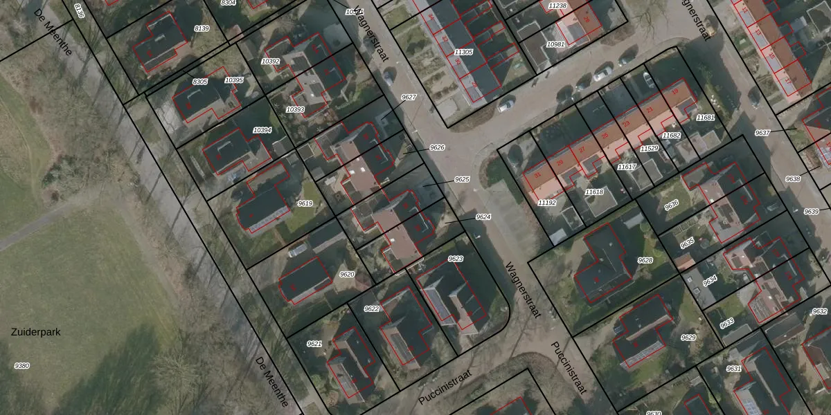 Gebruik de zoekbalk of klik op een perceel voor informatie over de adressen binnen dit perceel.