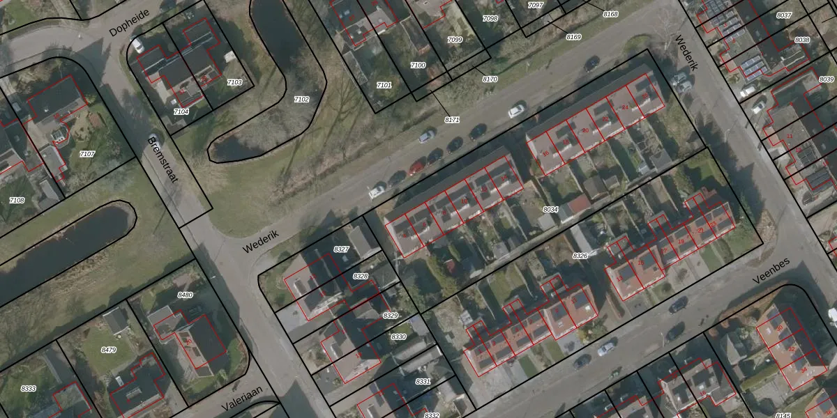 Het perceel waarop Wederik 6 staat heeft een oppervlakte van 2173 m². Dit is een zeer groot perceel. De perceeloppervlakte wordt geregistreerd door het Kadaster. Gedetailleerde informatie over de maten van dit perceel kunt u vinden in het rapport Kadastrale kaart met maatvoering van Wederik 6.