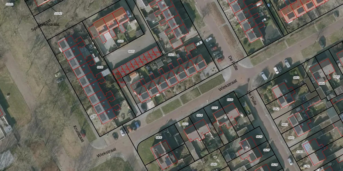 Wiekstraat 32 is gelegen op kadastraal perceel WVG00D6501. Deze kadastrale aanduiding is uniek en wordt gebruikt door het Kadaster om eigendomsrechten en andere zakelijke rechten vast te leggen. Het perceel maakt onderdeel uit van de kadastrale gemeente Wolvega.