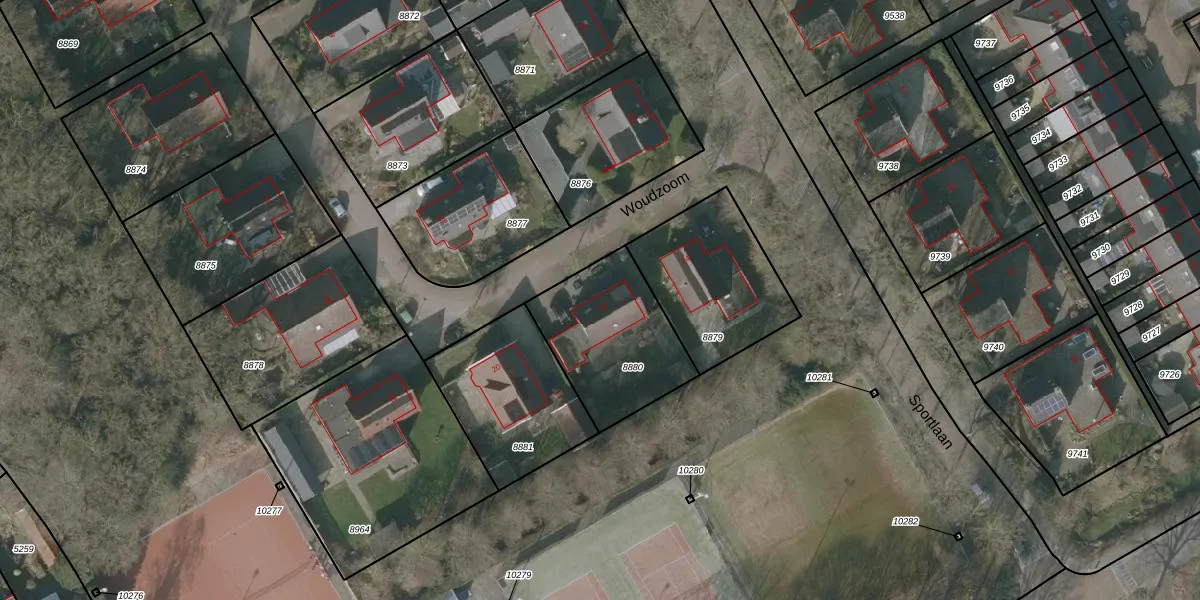 Gebruik de zoekbalk of klik op een perceel voor informatie over de adressen binnen dit perceel.