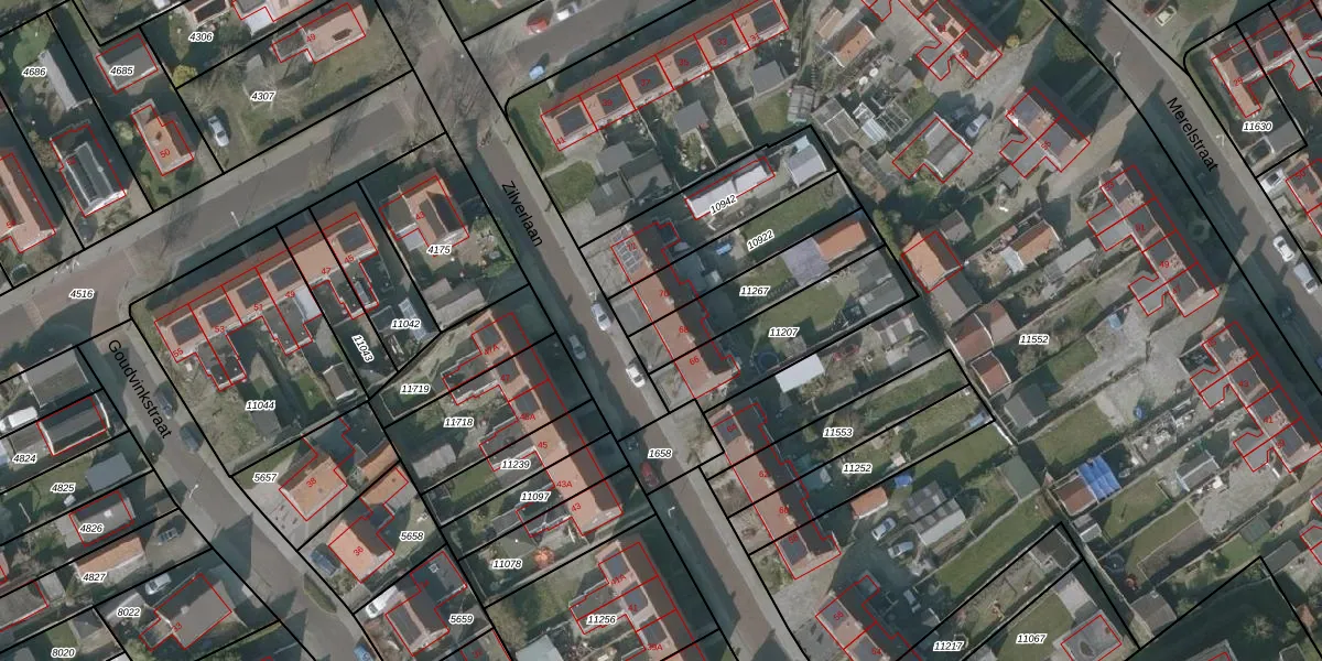Gebruik de zoekbalk of klik op een perceel voor informatie over de adressen binnen dit perceel.