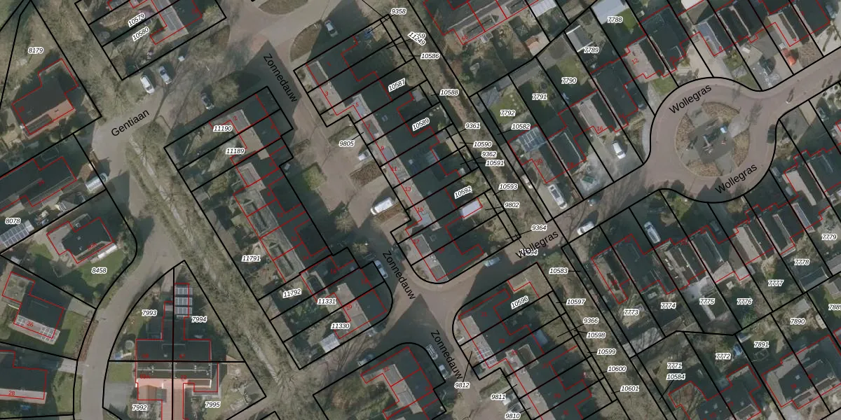 Zonnedauw 15 is gelegen op kadastraal perceel WVG00D10592. Deze kadastrale aanduiding is uniek en wordt gebruikt door het Kadaster om eigendomsrechten en andere zakelijke rechten vast te leggen. Het perceel maakt onderdeel uit van de kadastrale gemeente Wolvega.