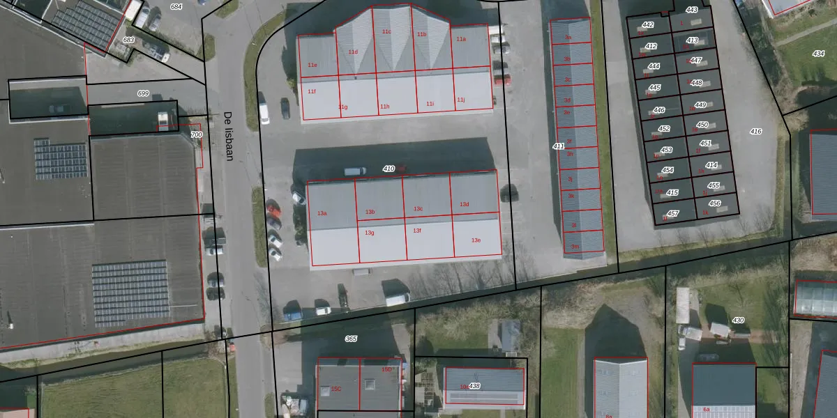 De Iisbaan 13-c is gelegen op kadastraal perceel WMS02L410. Deze kadastrale aanduiding is uniek en wordt gebruikt door het Kadaster om eigendomsrechten en andere zakelijke rechten vast te leggen. Het perceel maakt onderdeel uit van de kadastrale gemeente Wommels.