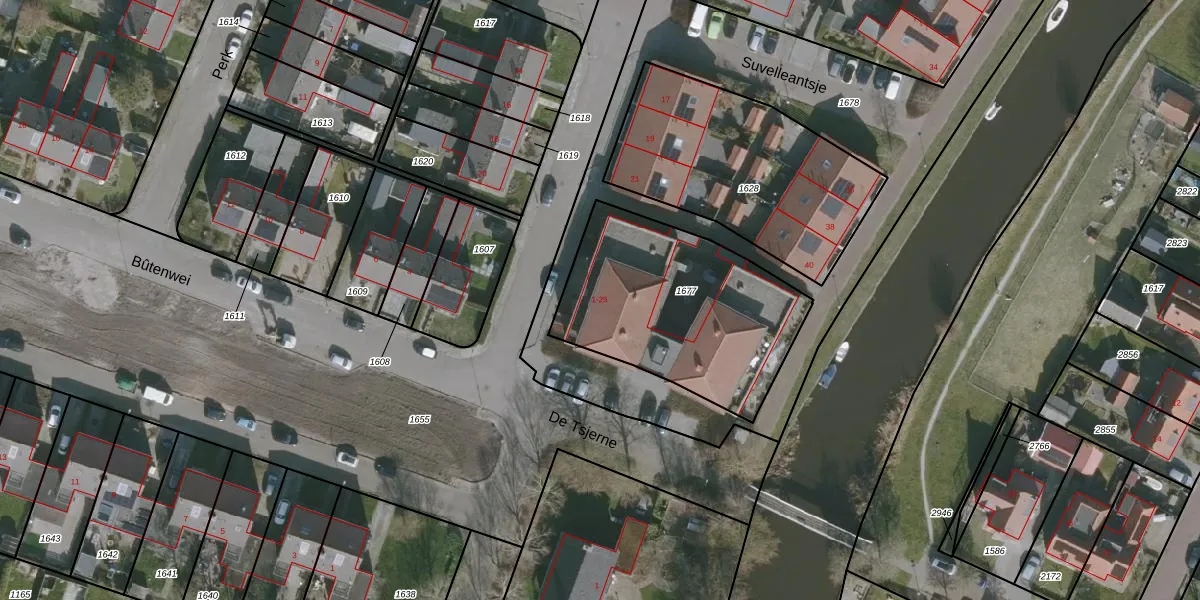 Het perceel waarop De Tsjerne 1 staat heeft een oppervlakte van 916 m². Dit is een groot perceel. De perceeloppervlakte wordt geregistreerd door het Kadaster. Gedetailleerde informatie over de maten van dit perceel kunt u vinden in het rapport Kadastrale kaart met maatvoering van De Tsjerne 1.